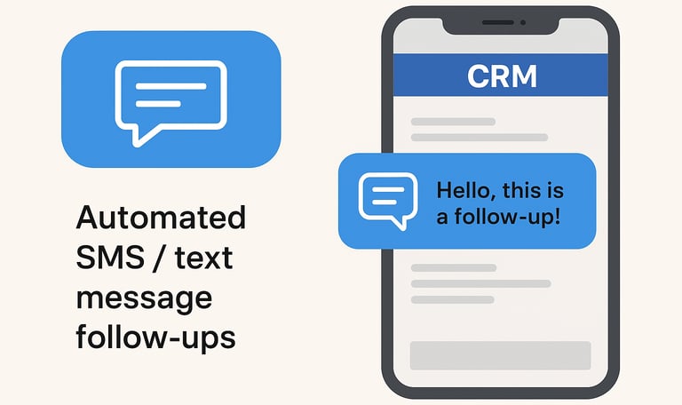 Automated SMS / text message follow-ups — Alongside email, some CRMs support text messages or SMS to reach leads quickly, automatically triggered based on actions or time.